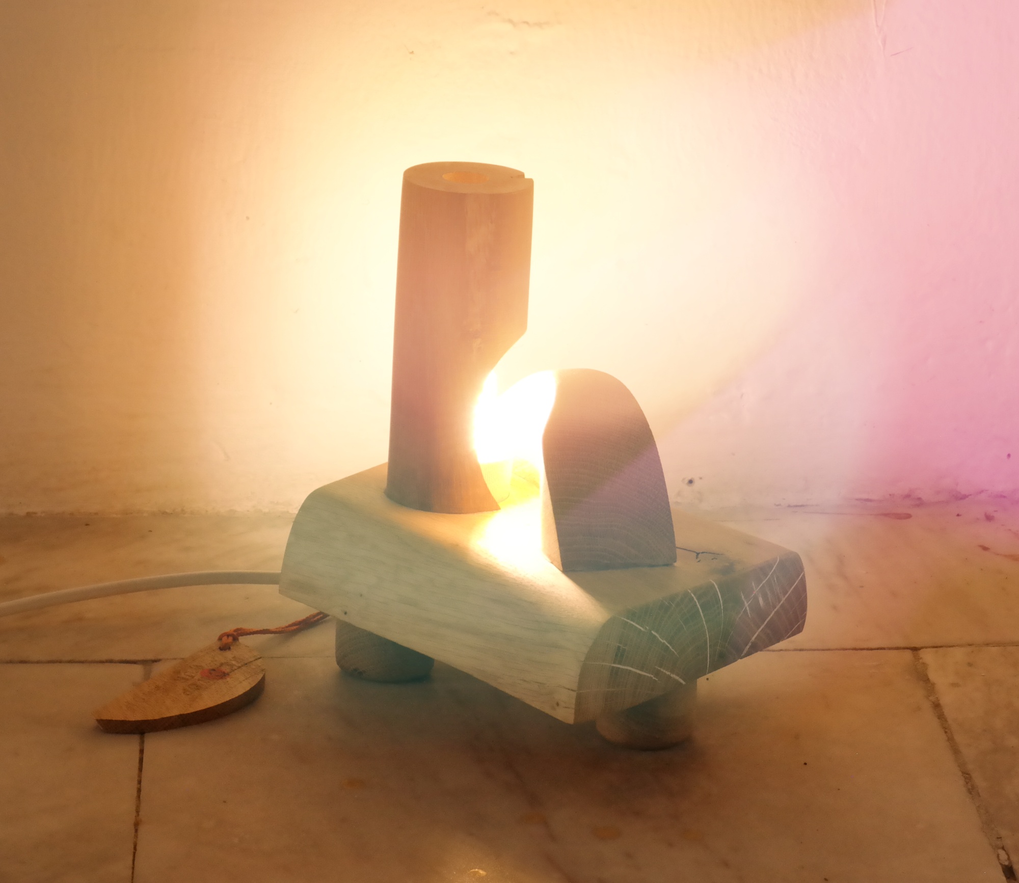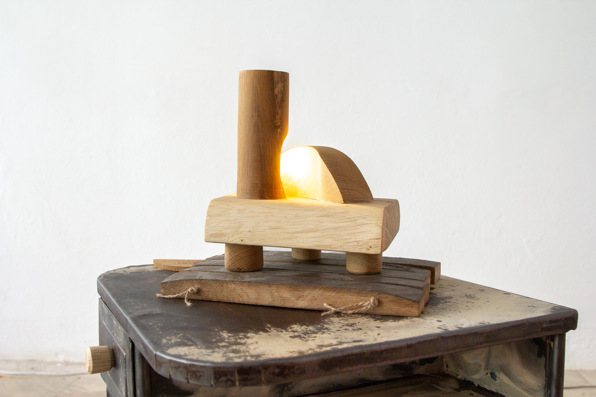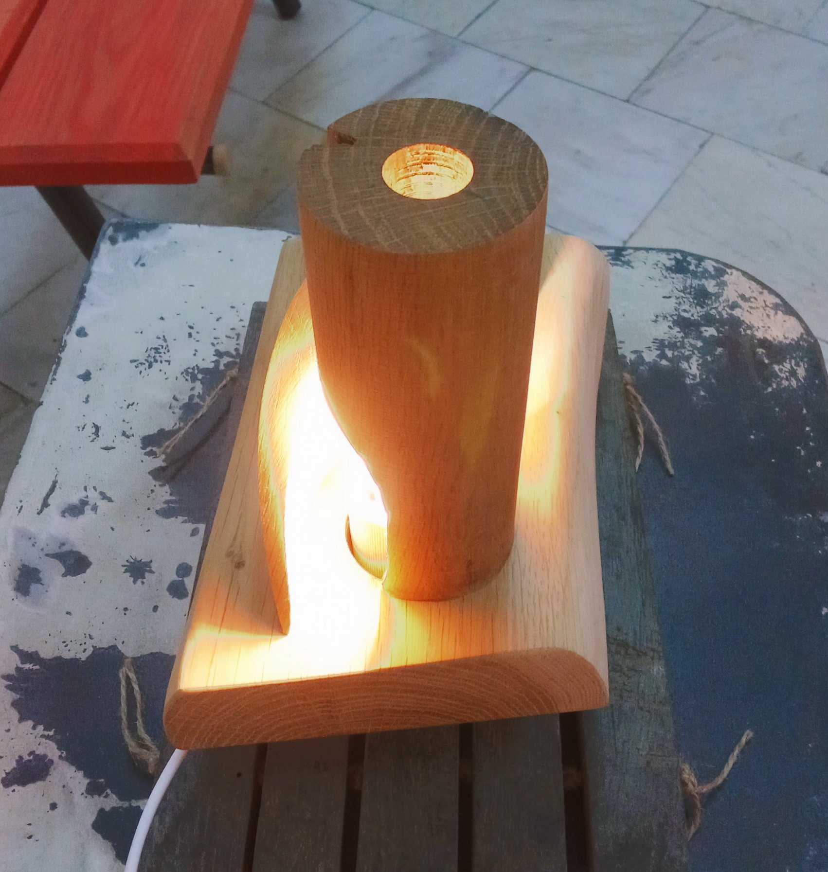 Oak column lamp